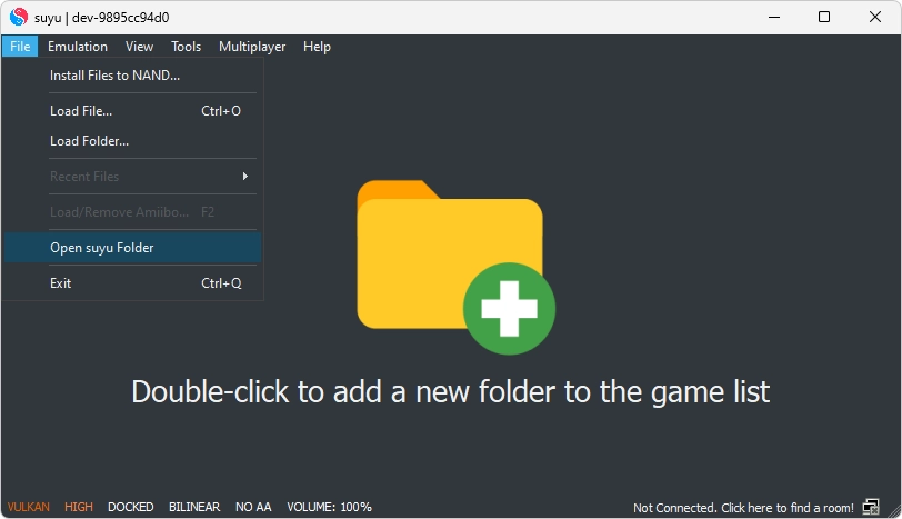 - Click on File → Open Suyu Folder.